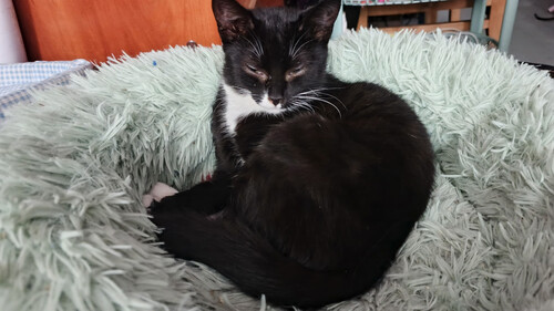 Отдается в хорошие руки котик Мэрфи. Котику не больше 2 лет, он кастрирован, к лотку приучен. Окрас не чисто чёрный, есть белый пятнышки. Мэрфи активный, любопытный, очень любит играть. С людьми ласковый, но пристраивать лучше одним животным, так как доминирует над друг... |