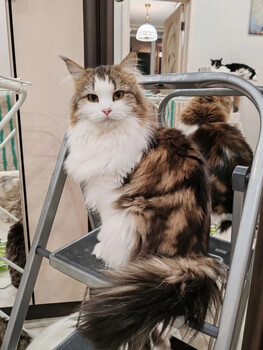 Чудесная кошечка! Все при ней, и внешность, и добрый характер. Певунья и игрунья, настоящая сибирская красавица, пушистая, статная, грациозная, У Вареньки роскошная серо-коричневая шубка дивной красоты, а ее шикарному хвосту позавидует любая лисичка. А какая умненькая, ... |