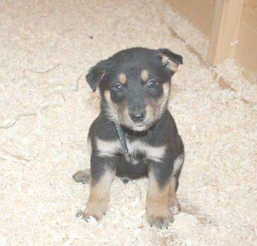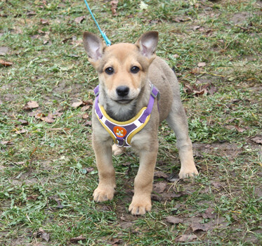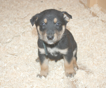 Твиги — очень нежная и спокойная девочка. Она обожает сидеть у вольера и внимательно наблюдать за жизнью взрослых собак, словно мечтая о будущем. А когда приходит время ласк, она с блаженством подставляет пузико, чтобы её почесали. Возраст 2 месяца... |