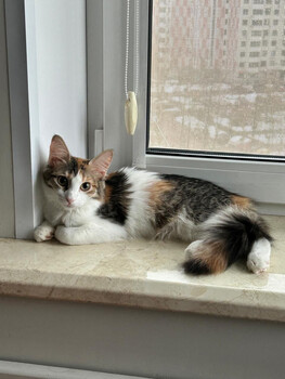 Ксюша — нежная, ласковая, красивая кошечка-трехцветка. Пушистая, со смешной мордашкой, шелковистой пушистой шерсткой и большими удивлёнными глазками. У неё дружелюбный, спокойный характер счастливой домашней кошки, для которой главное в жизни — любимые хозяева и уютный ... |