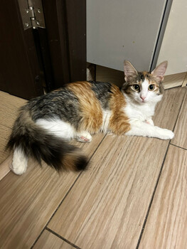 г. Раменское. Кошечка 1.5 года, трёхцветная, домашняя, с другими животными ладит, игривая, общительная, к лотку приучена. Ищет семью. Звонить по телефонам 89015103486, 89629030143... |