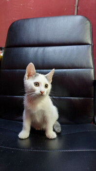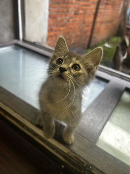 Лёвушка, или Лёвчик. Мальчик появился на свет 29.04.2025. Маленькое ушастое чудо. Родился и живёт на улице. Был самым мелким котенком в помёте из 5 котят. Если бы мы не подкармливали его маму, у Лёвушки было мало шансов на выживание. Но он всегда держал хвост пистолетом... |