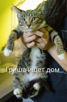 Гриша – котенок-полосатик в белых носочках. Возраст 3 месяца. У него яркие желтые глаза и милый шоколадный нос. Гриша - робкий мальчик, ему очень нужен рядом добрый человек с чутким сердцем. Здоров, сданы анализы. Обработан от паразитов. Приучен к лотку. Ищем дом!... |