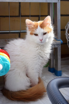 Сладус вместе со своими братиками и сестричками выживал на улице...Выживал в морозы и прятался под машинами на стоянке... Очень ласковый и ручной. Активный, уверенный. Маленький герой. На улице стало опасно. Временно спрятали в бокс зооцентра, но дальше ему некуда и... |