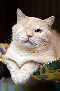 Мартин. Котик очень красивого бурундукового окраса с забавными пятнышками на животе. По характеру игривый, но при этом нежный и ласковый, очень любит сидеть на руках и мурчать. Глазик, к сожалению, останется таким, но на очарование этого кота не влияет. Помутнение произ... |
