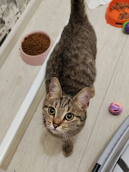 Добрейший кот, который мечтает стать домашним. Он следит из своей клетки за каждым проходящим мимо человеком, льнет к решетке, просит ласки. Этот серый мальчишка для людей, кто любит животных. Для тех, кто хочет настоящего друга. Будет предан как пес, следовать по пятам... |