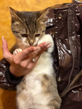 Санкт-Петербург и ЛО. Катя, кошечка с характером. Родилась в промзоне и не так давно была забрана на передержку. Очень быстро привыкла к мягким лежаночкам и игрушкам. Кошечке примерно месяцев шесть Немного диковата, но ласку любит. Просто еще не привыкла. Если поймать и... |