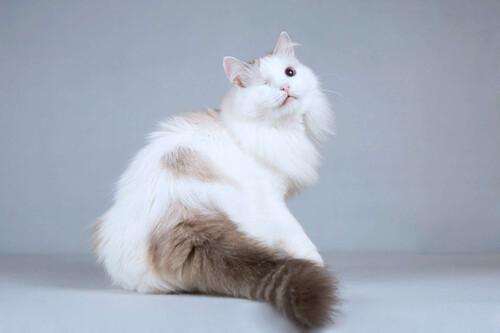 Порода Рэгдолл. Один из её прекрасных голубых глаз уже никогда не увидит свет. Но она по-прежнему прекрасна, кошечка Беатриче с нежнейшей шерсткой и нежнейшим характером. По внешним данным она относится к породе Рэгдолл, и поведение тоже похоже на эту породу – трогатель... |