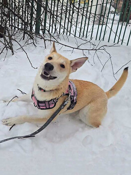 Мята добрая, ласковая, молоденькая собака. Бывше домашняя, её выбросили и она успела на улице ощениться. Веру в человека не потеряла, тянется к общению, просит внимание. К чужим относится осторожно. Возраст примерно три года, стерилизована, вакцинирована, от паразитов о... |